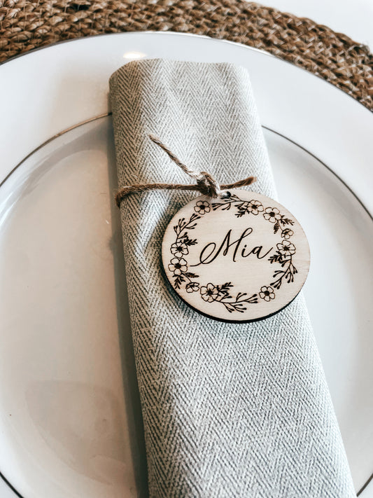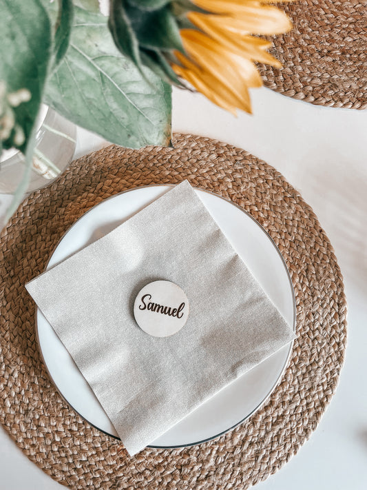 BORDKORT i tre (løkkeskrift i sirkel gravert)