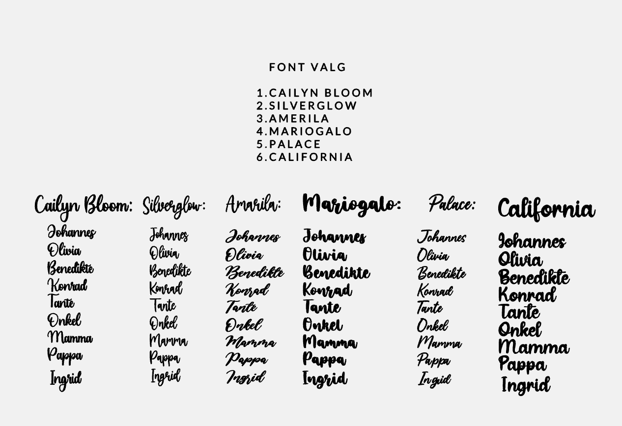 - velg ønsket font og om du ønsker tynn eller tykk sirkel rundt navnet.🌿På bordkortene på bildene er det tynn sirkel.
