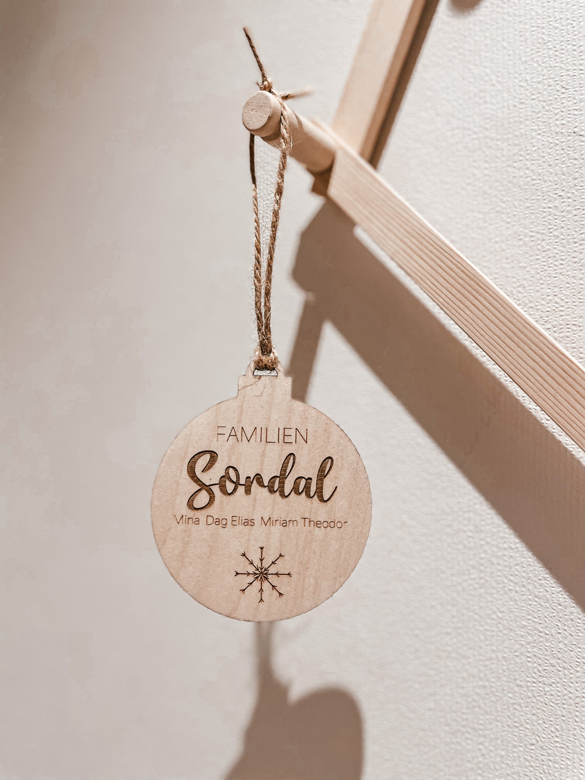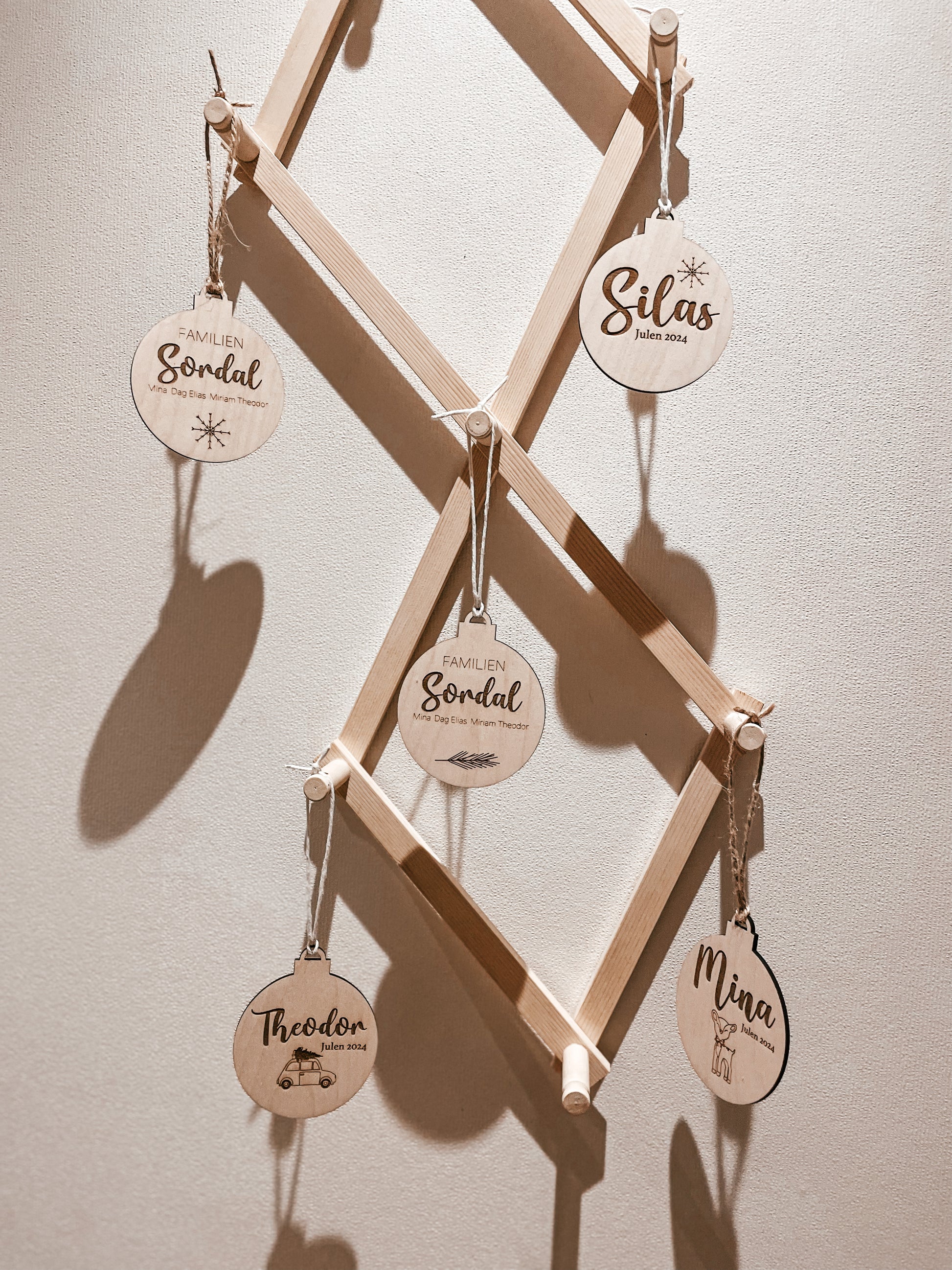Nydelige og unike julekuler av 3mm bjørkfiner med navn🫶🏻 setter et personlig preg på julepynten på treet❤️ Velg det motivet du ønsker og skriv hvilke tekst du vil ha i infoboks i handlekurv! 🤎