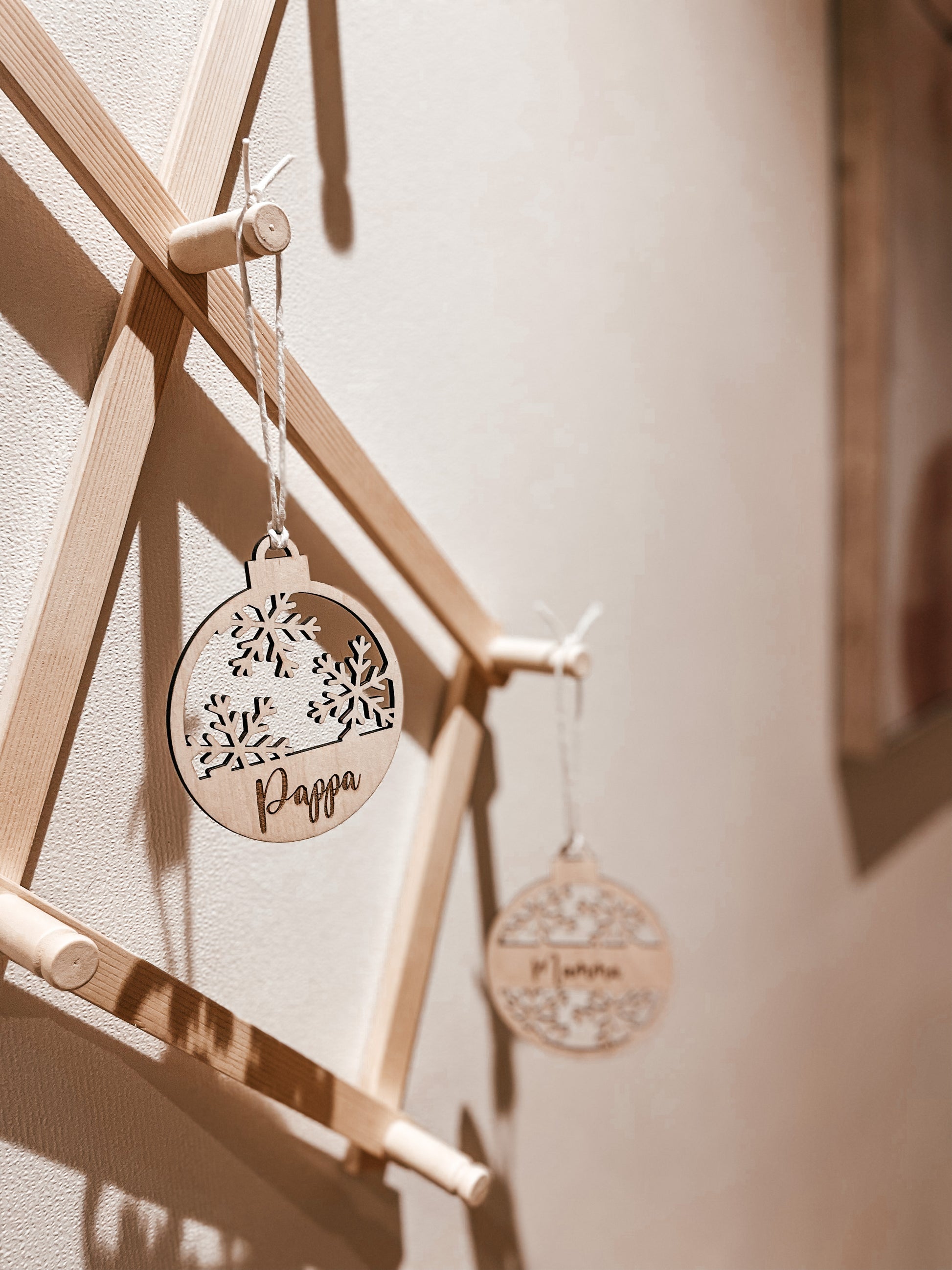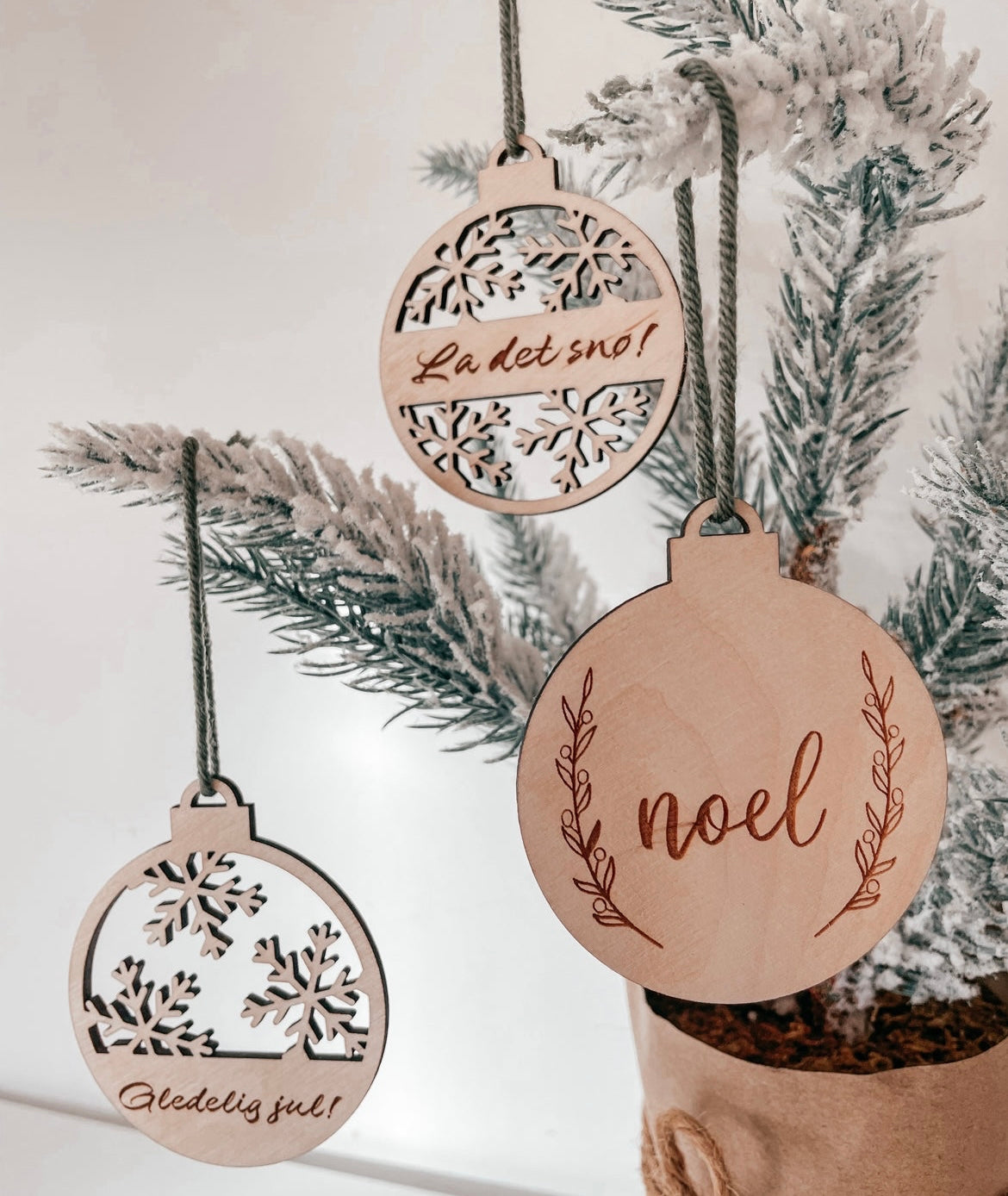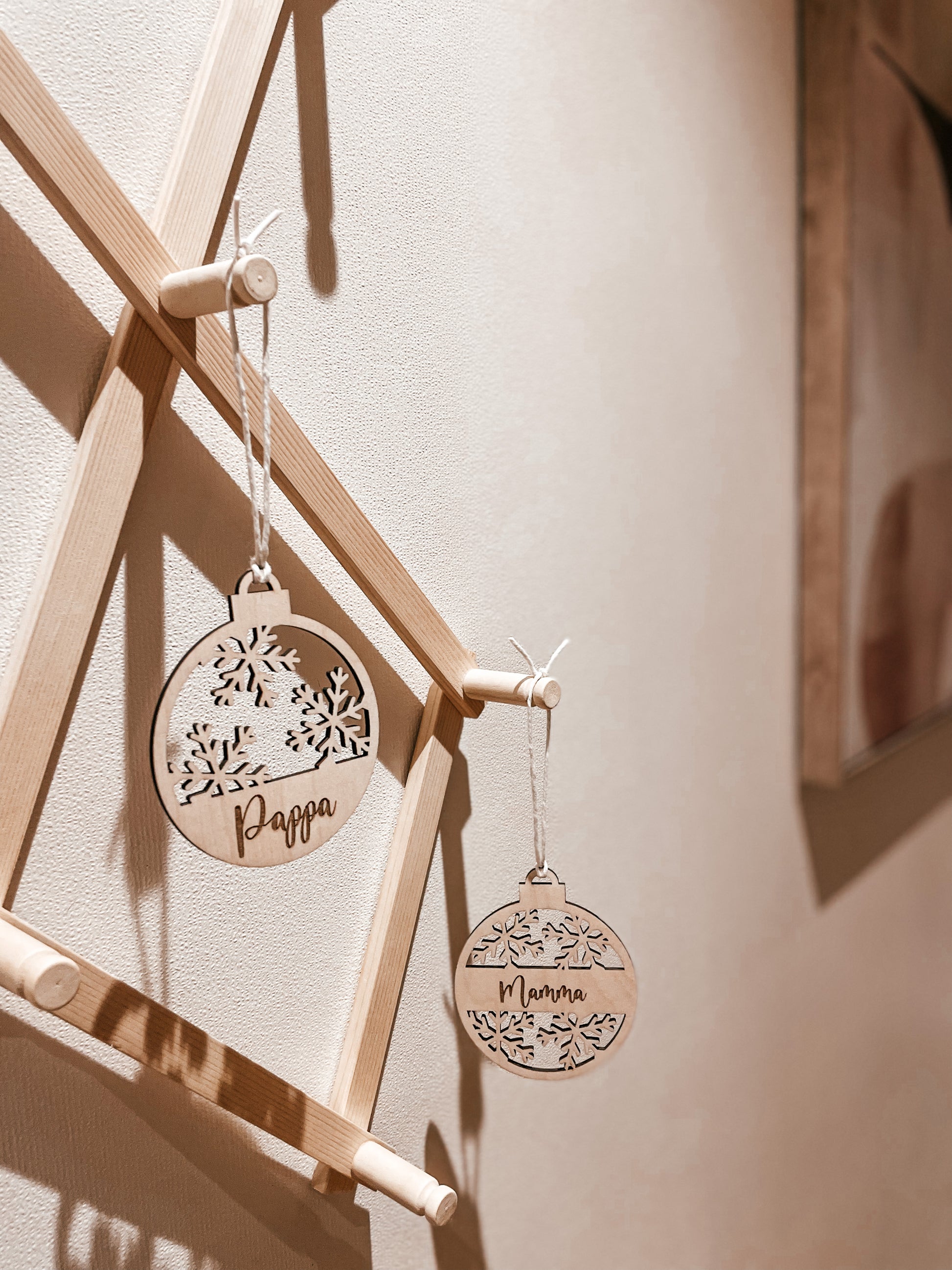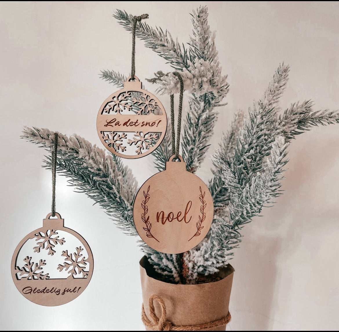 nydelige julekuler laget av 3mm bjørkfiner, som du kan få med akkuratt den teksten du ønsker! Så vakker, tidløs og ikke minst unik! ❤️
