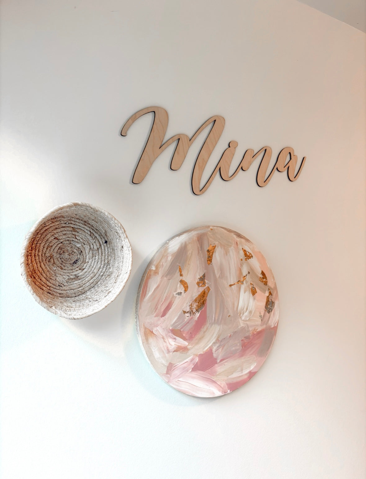 Et nydelig skilt i løkkeskrift med valgfritt navn eller tekst!
